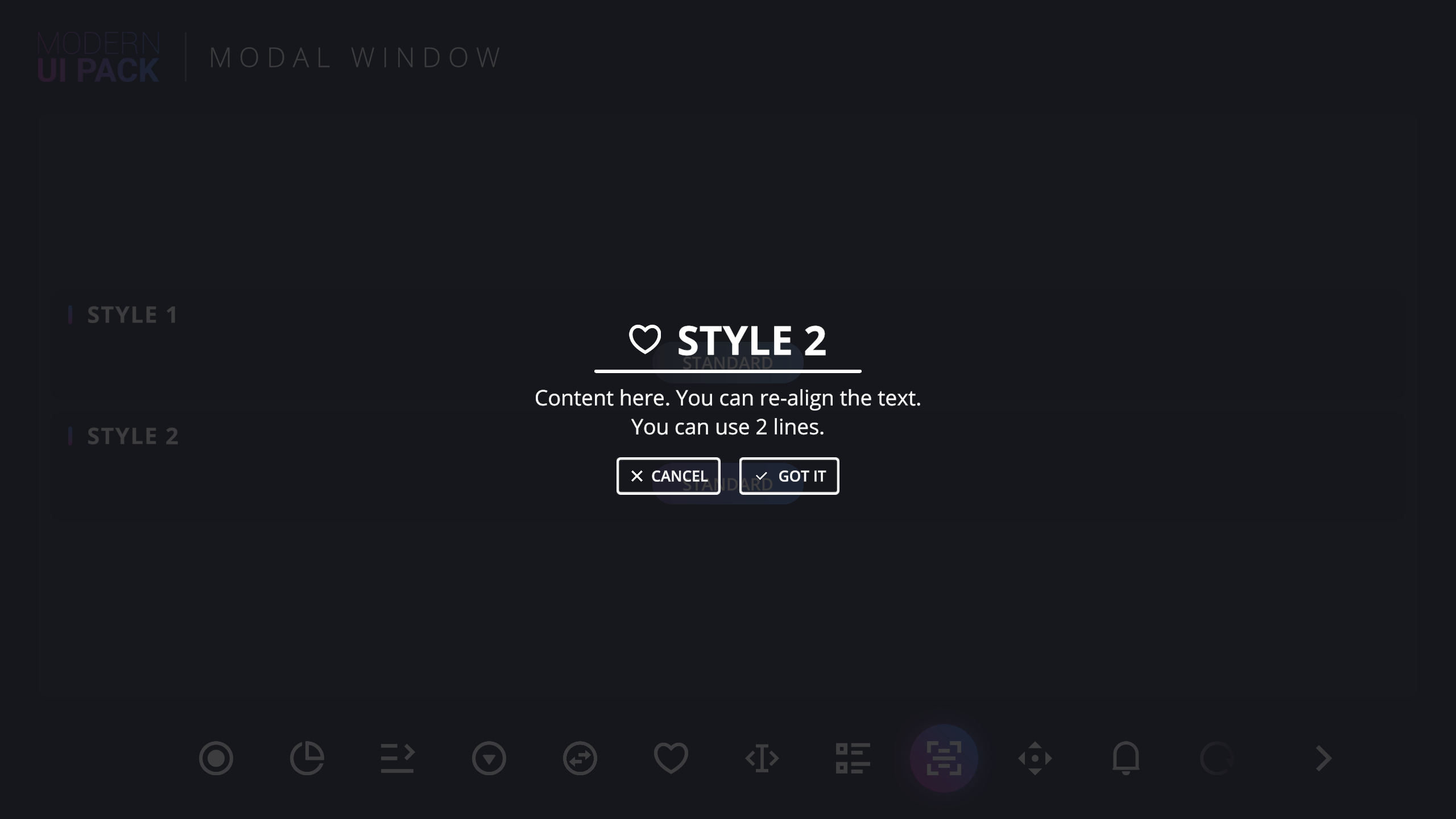 Modern UI Pack is a clean, minimalistic and stylish UI package for those who want to have better and rich featured UI elements.